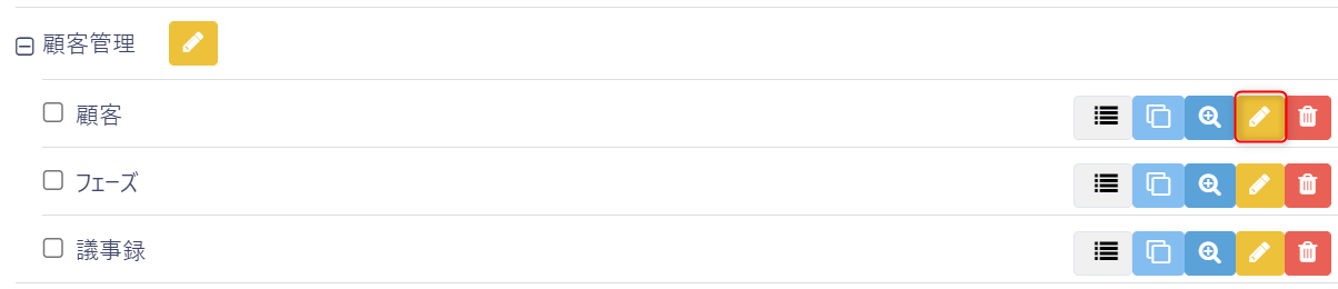 表示されたグループの中のテーブルの右横に表示されている鉛筆マークをクリックします。