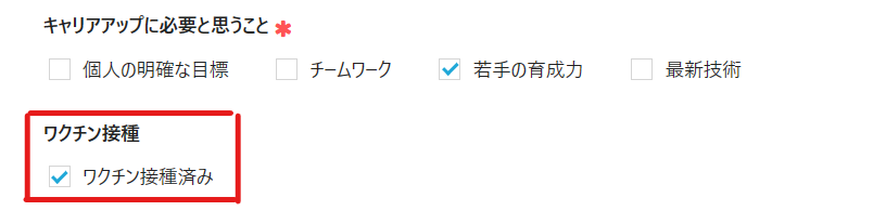 チェックボックスでチェックされた(「Yes」と回答された)場合、下記の通り表示されます。※チェックされていない(「No」)場合は表示されません。