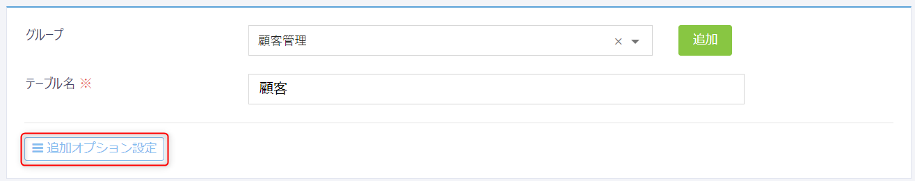 テーブル編集画面より、「追加オプション設定」をクリックします。