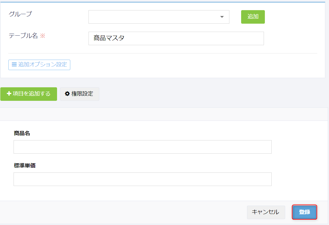 問題なければ「登録」ボタンをクリックし、テーブル登録を完了させます。
